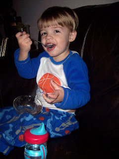 Clay has always done well with bedtime and we are not about to start now with the getting up every five minutes. The hard part, though, is the potty training. We're asking ourselves should we let him go every time he wants to or are we just suckers??